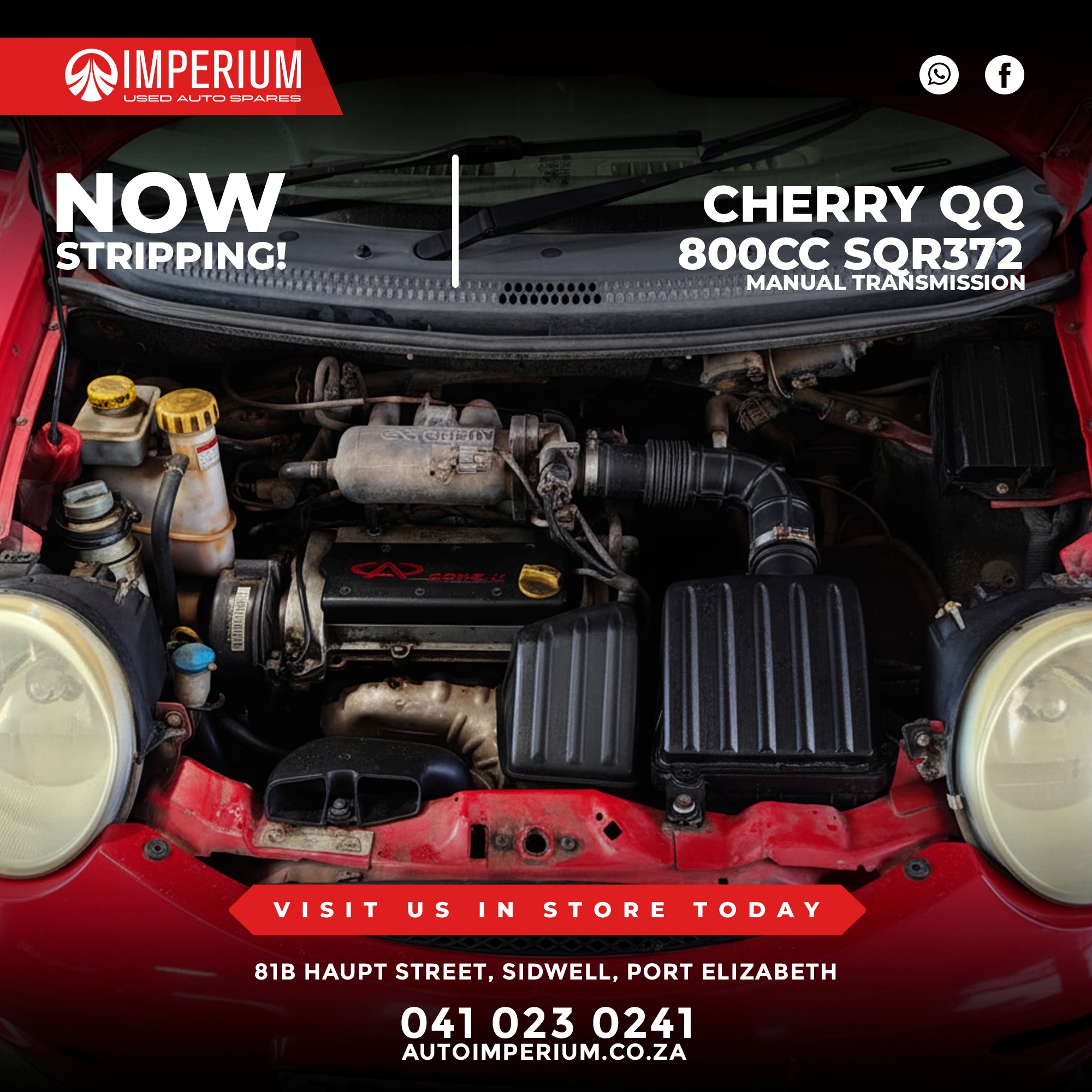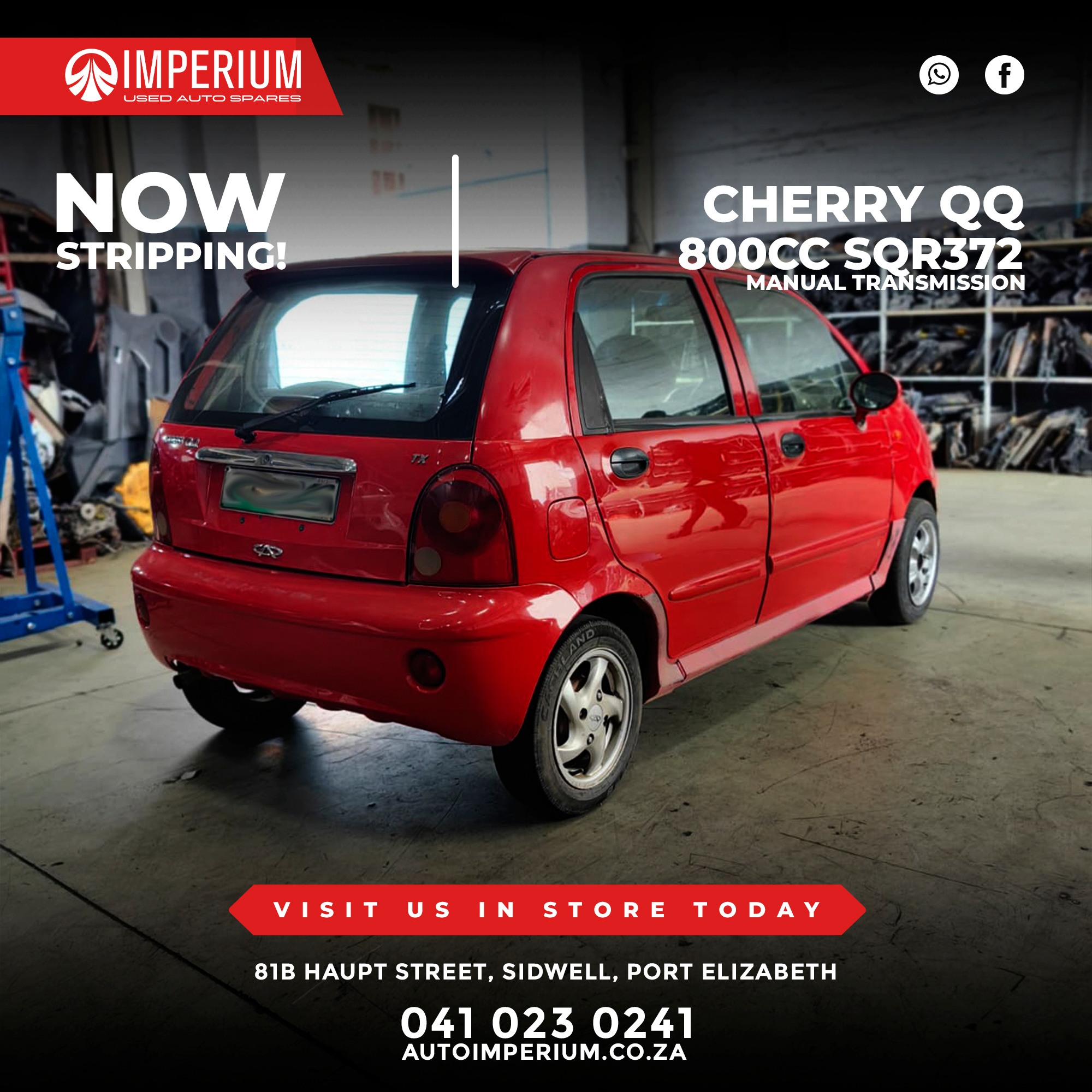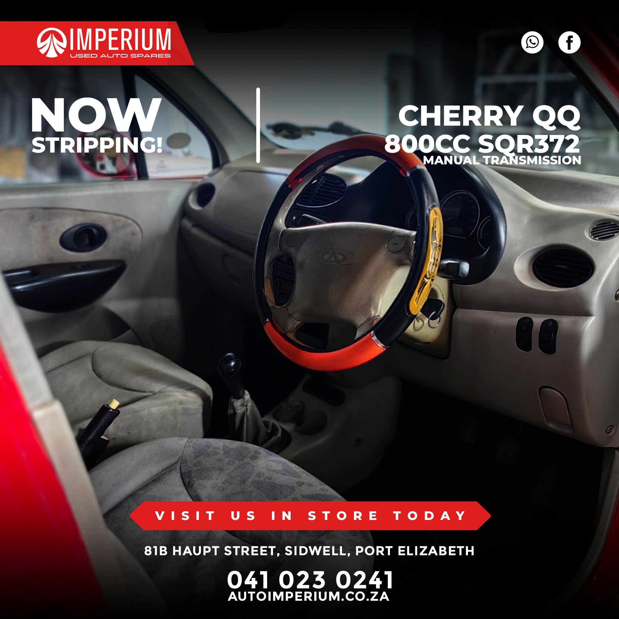 This Chery QQ 800CC SQR372 is currently being stripped for used parts. A wide range of original Chery components will be available, ideal for repairs or replacements.