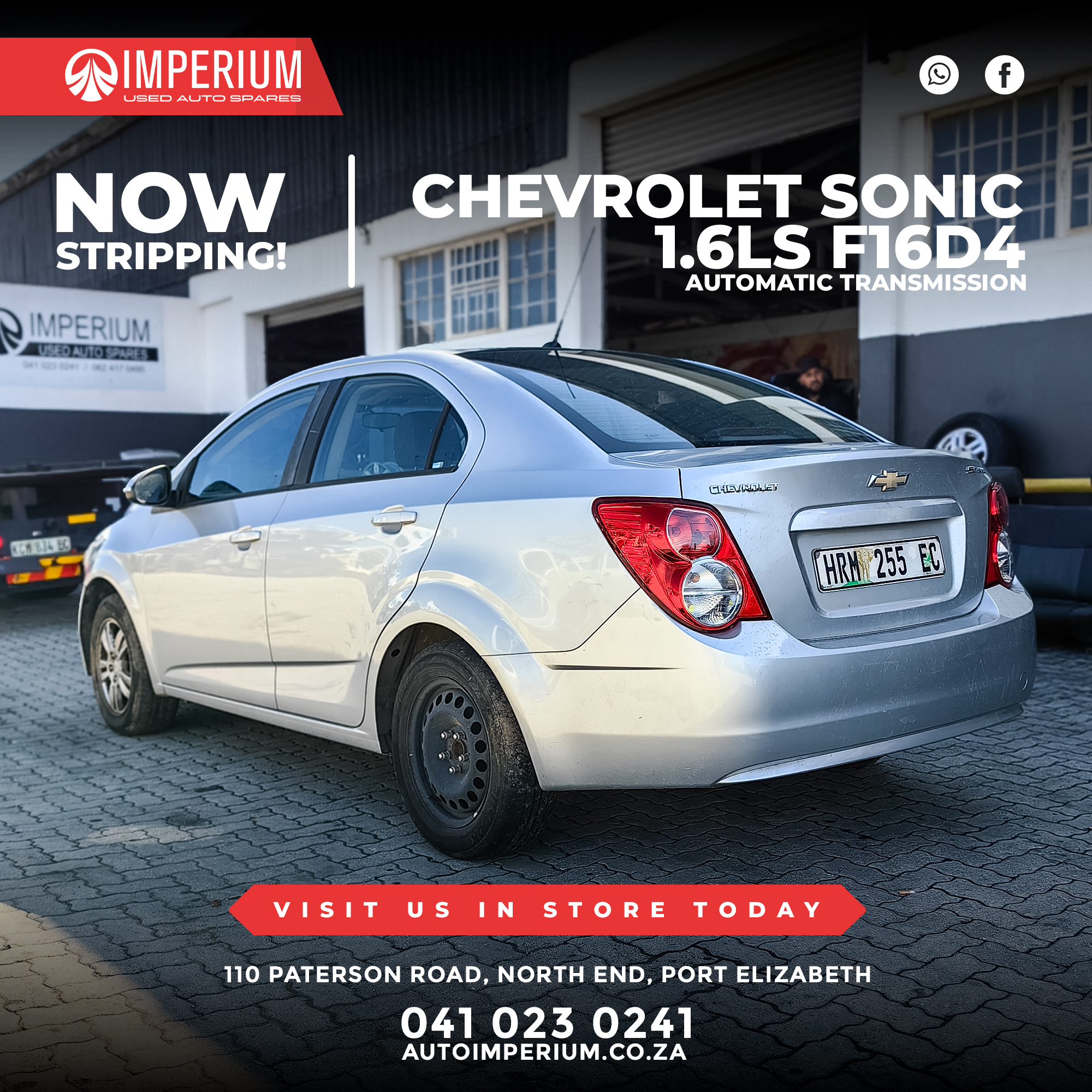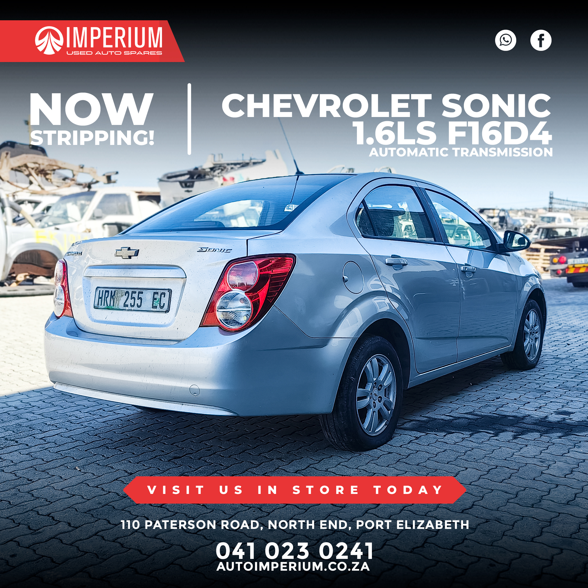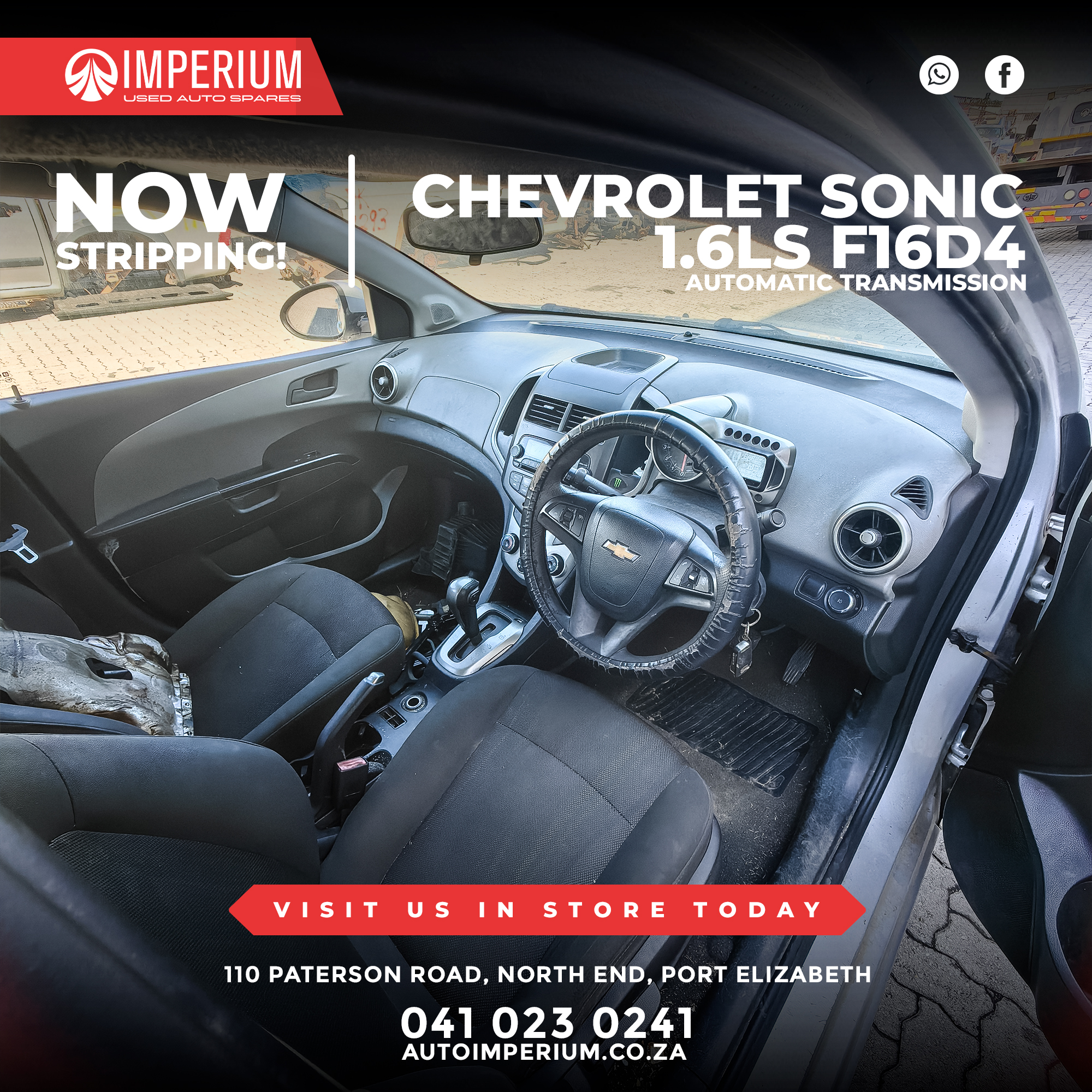 This Chevrolet Sonic 1.6LS F16D4 is currently being stripped for used parts. A wide range of original Chevrolet components will be available, ideal for repairs or replacements.