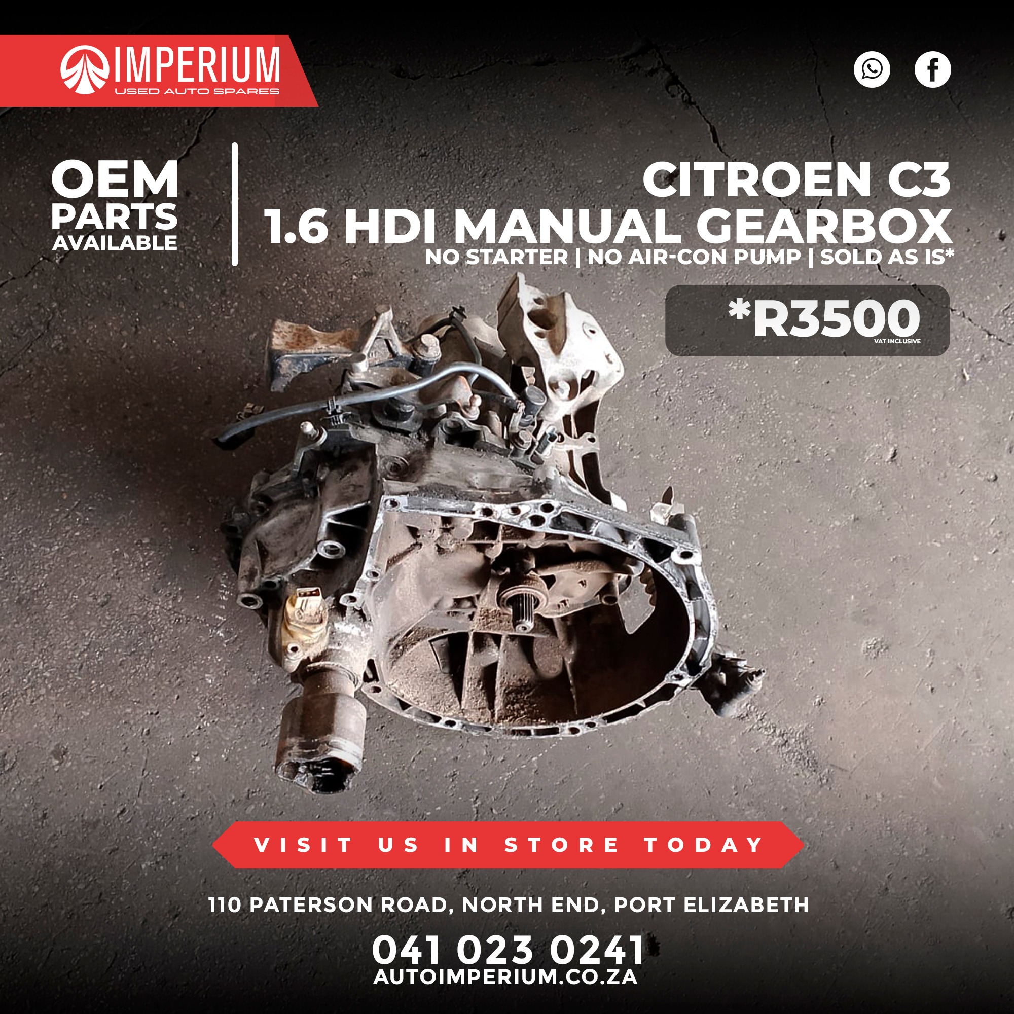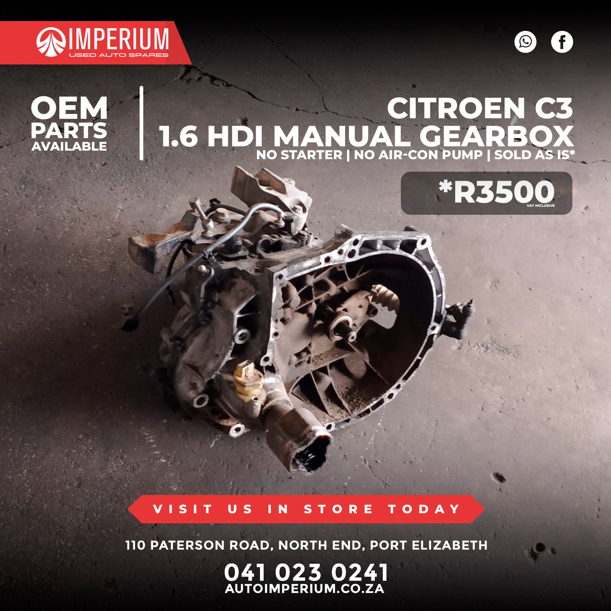 This is a used Citroen C3 1.6 HDi Manual Gearbox, available from our Paterson Road branch in North End. Ideal for replacements or rebuild projects.