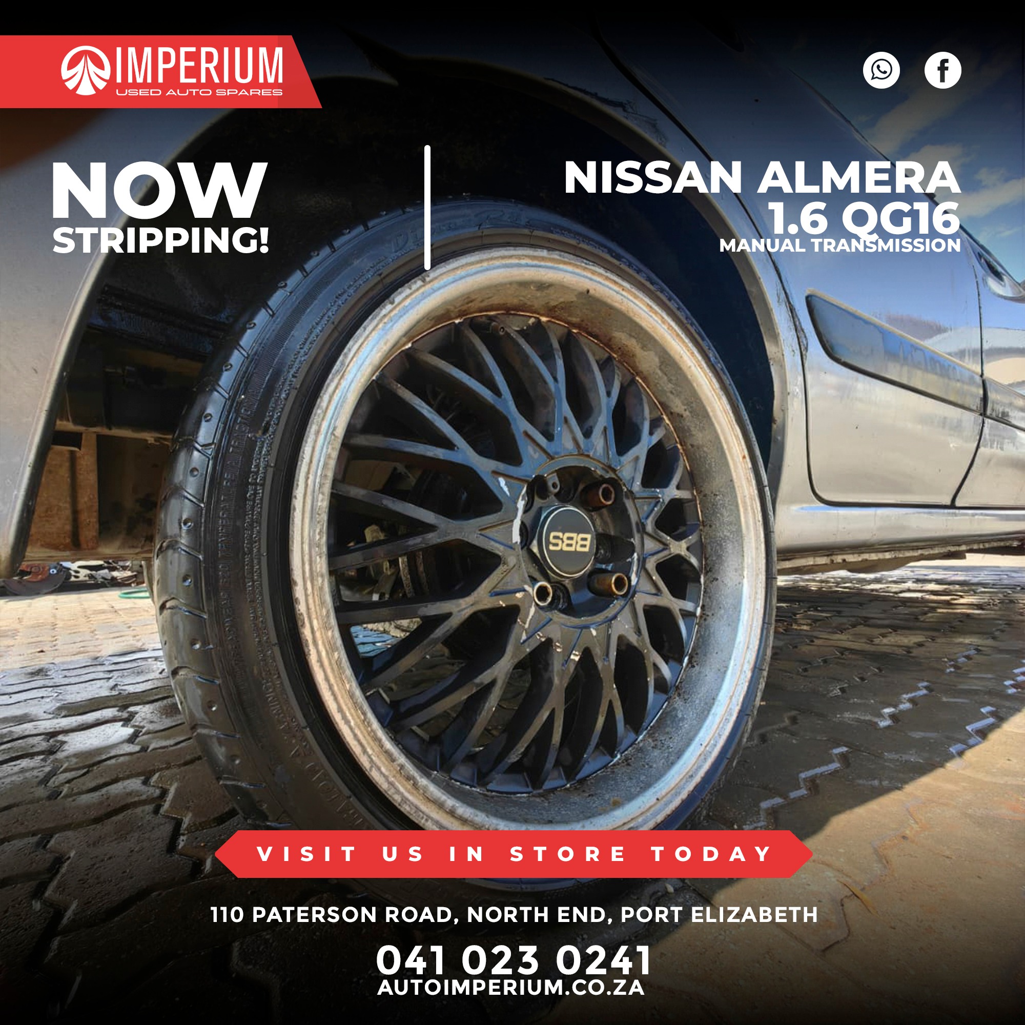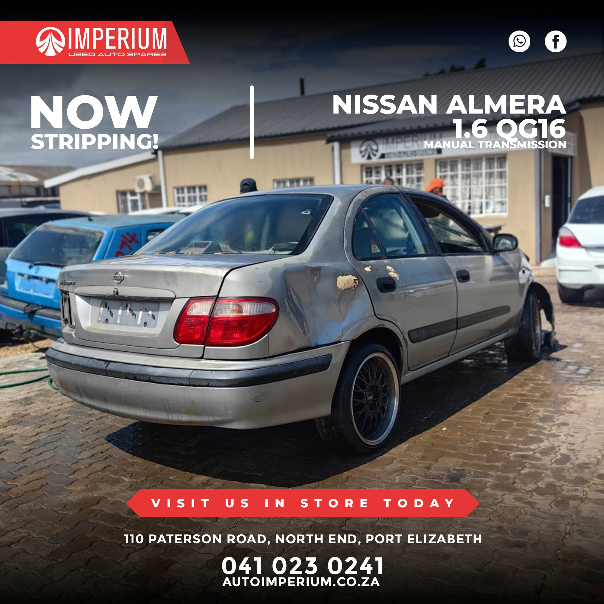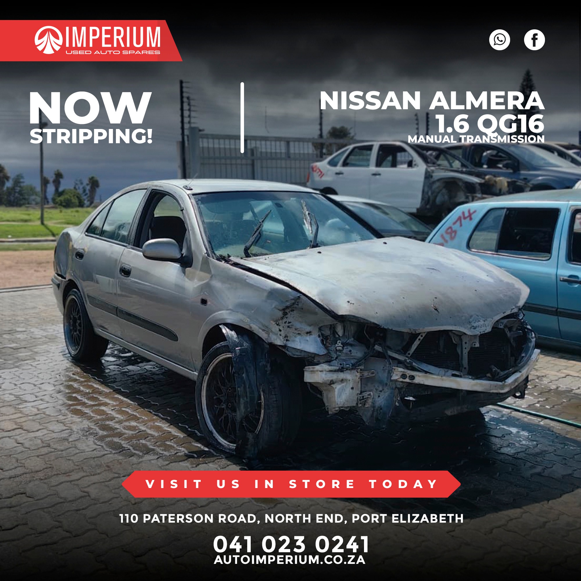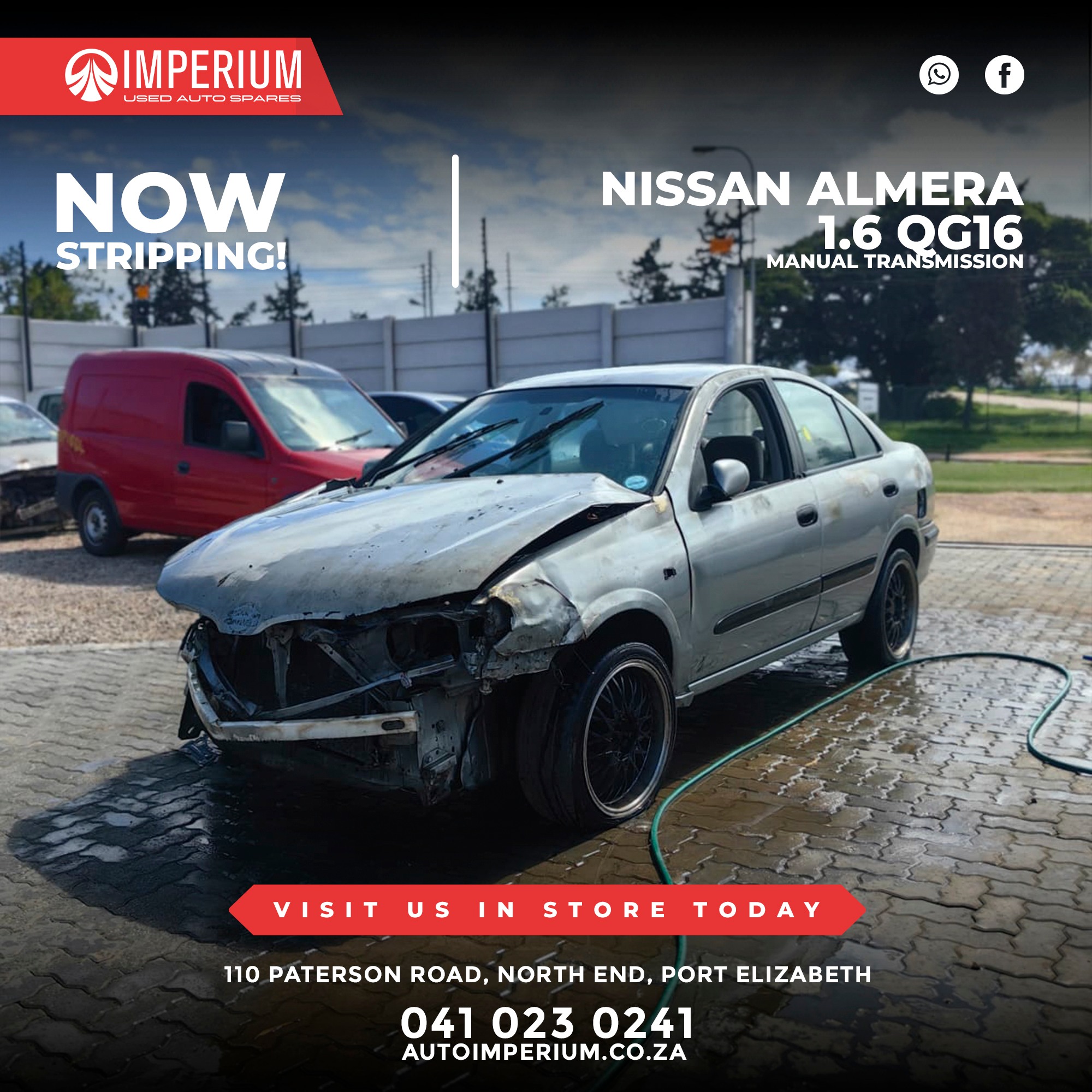 This Nissan Almera 1.6 QG16 is currently being stripped for used parts. A wide range of original Nissan components will be available, ideal for repairs or replacements.