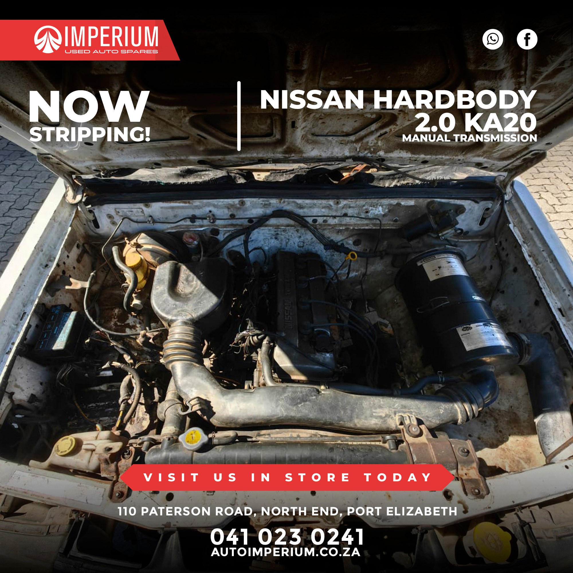 This Nissan Hardbody 2.0 KA20 is currently being stripped for used parts. A wide range of original Nissan components will be available, ideal for repairs or replacements.