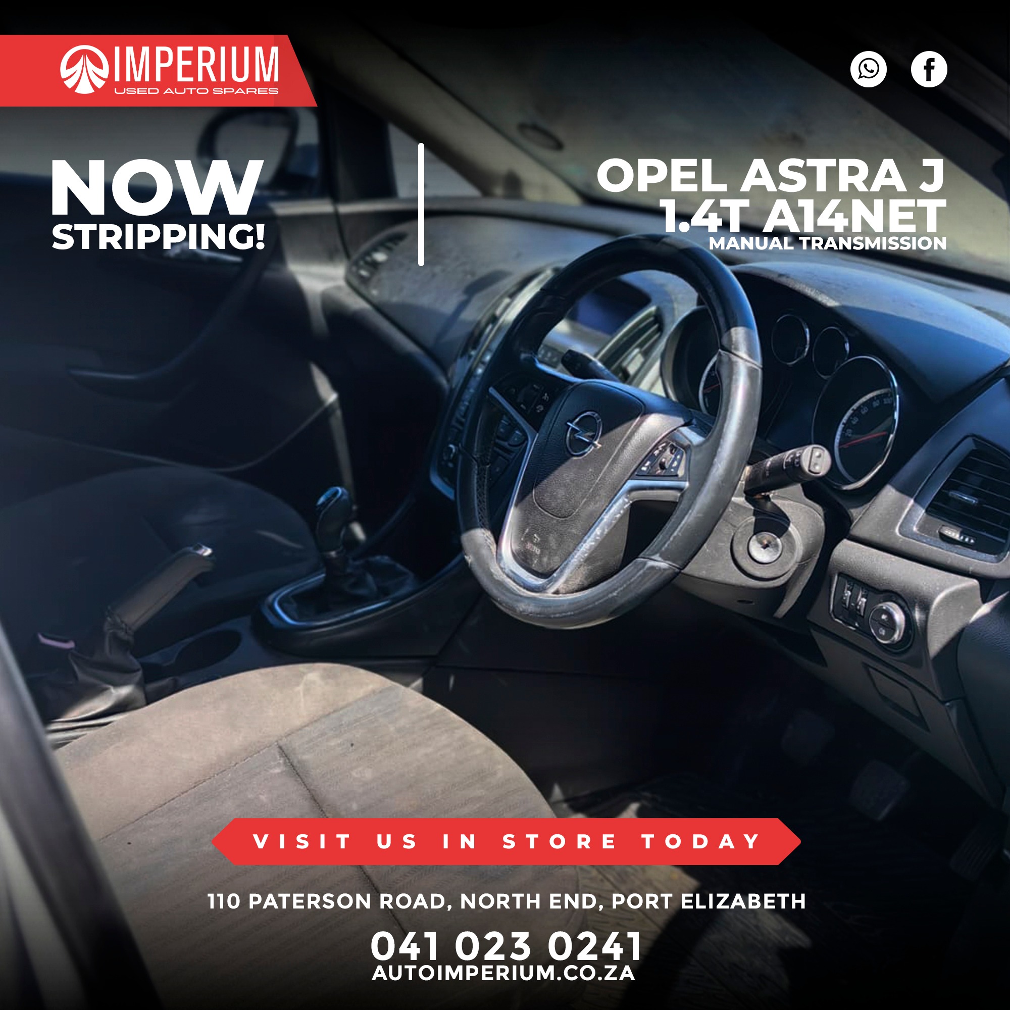 This Opel Astra J 1.4T is currently being stripped for used parts. A wide range of original Opel components will be available, ideal for repairs or replacements.