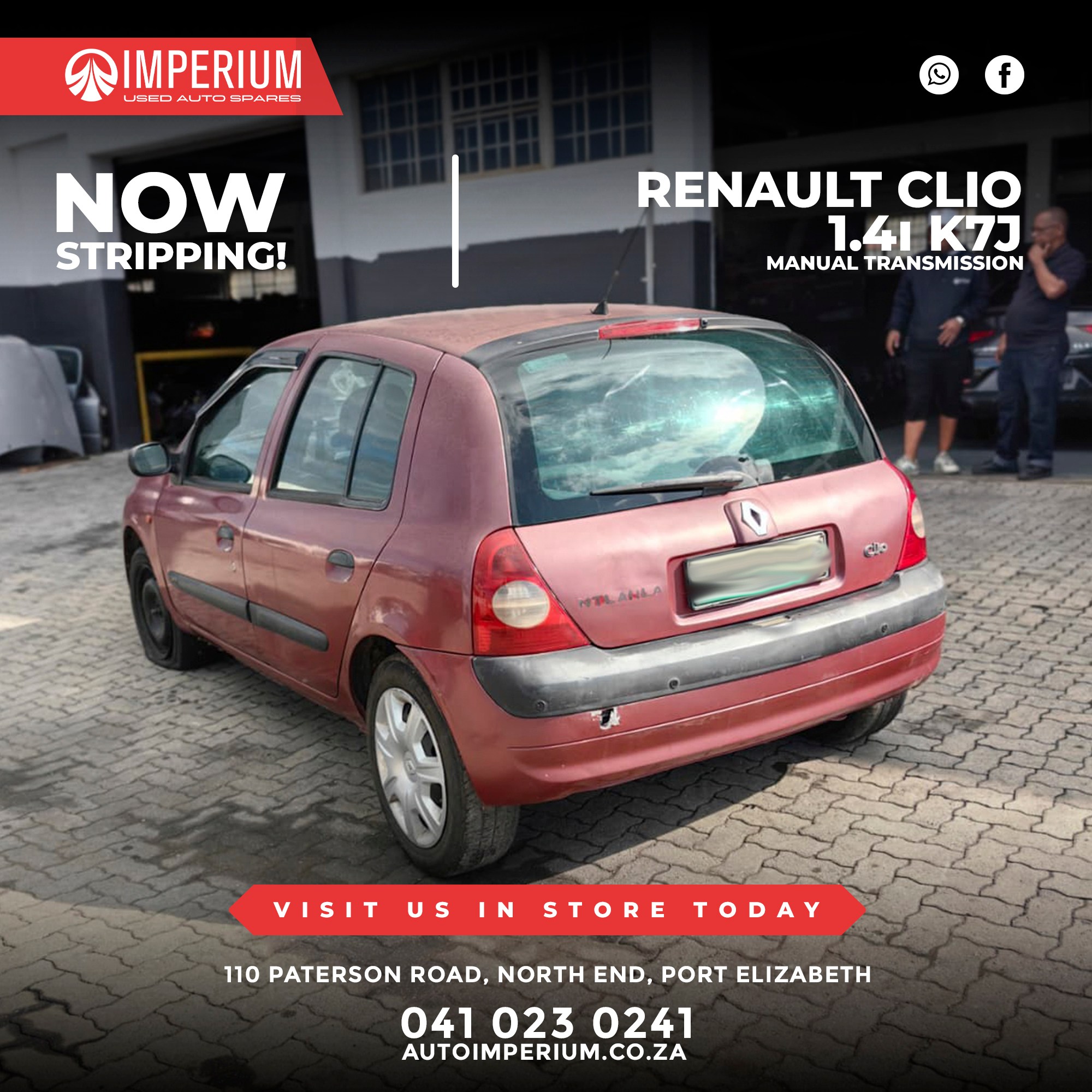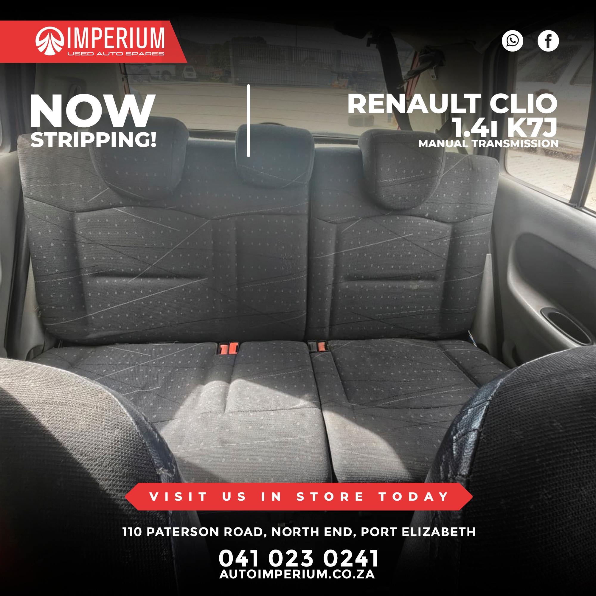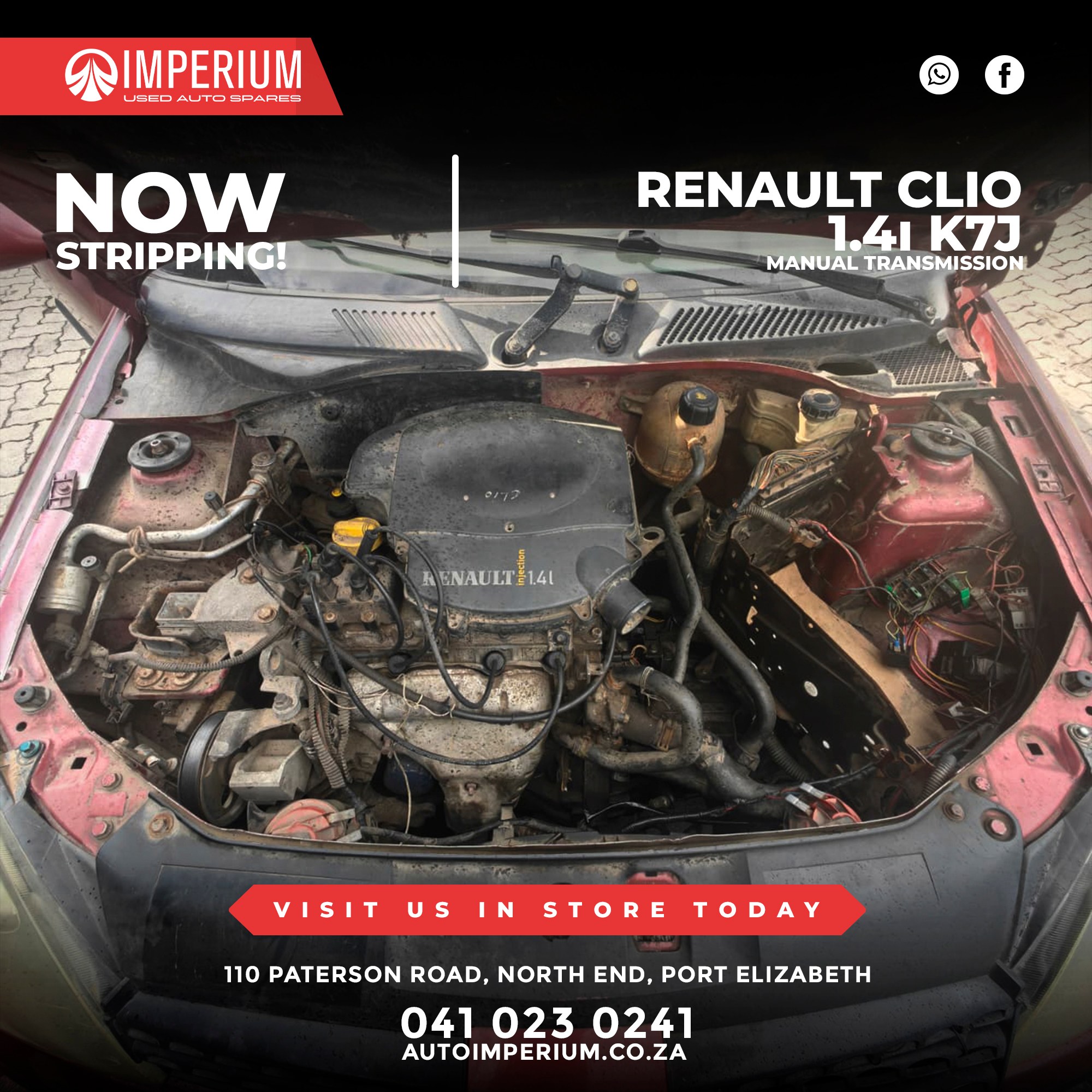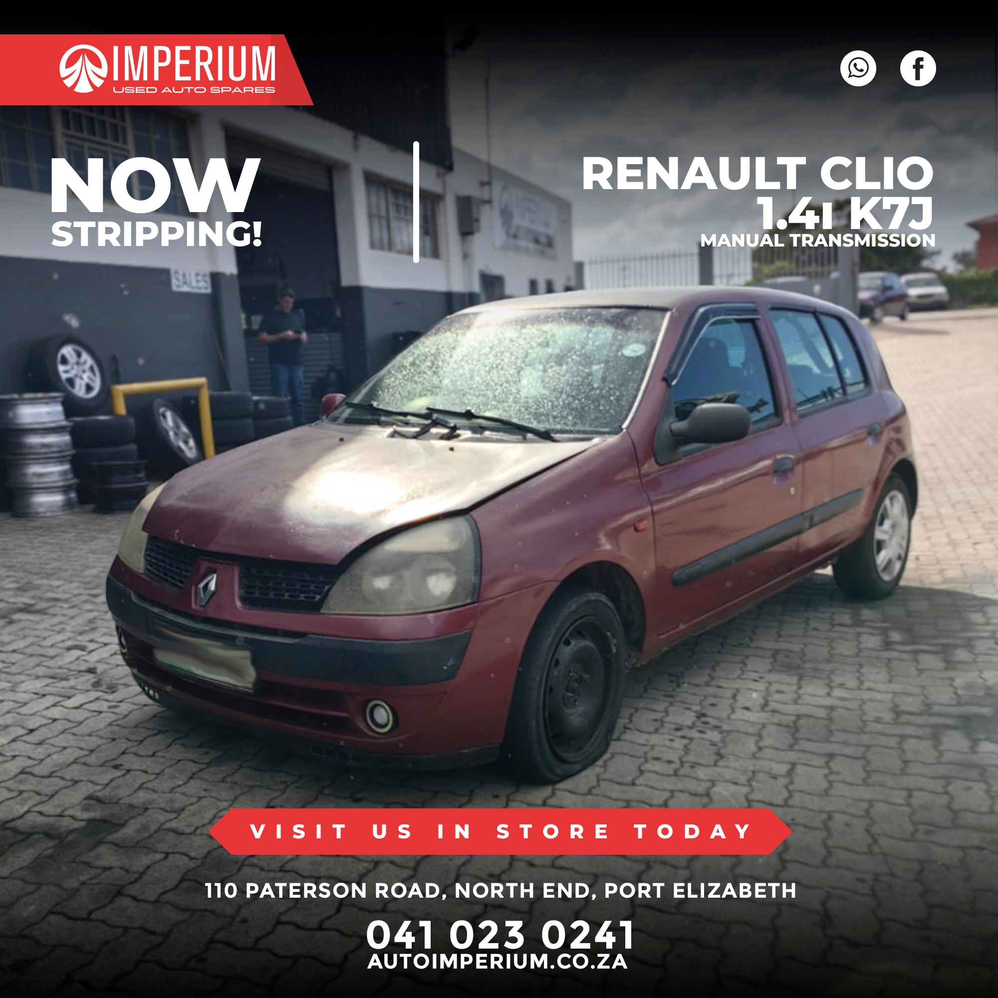 This Renault Clio 1.4i K7J is currently being stripped for used parts. A wide range of original Renault components will be available, ideal for repairs or replacements.