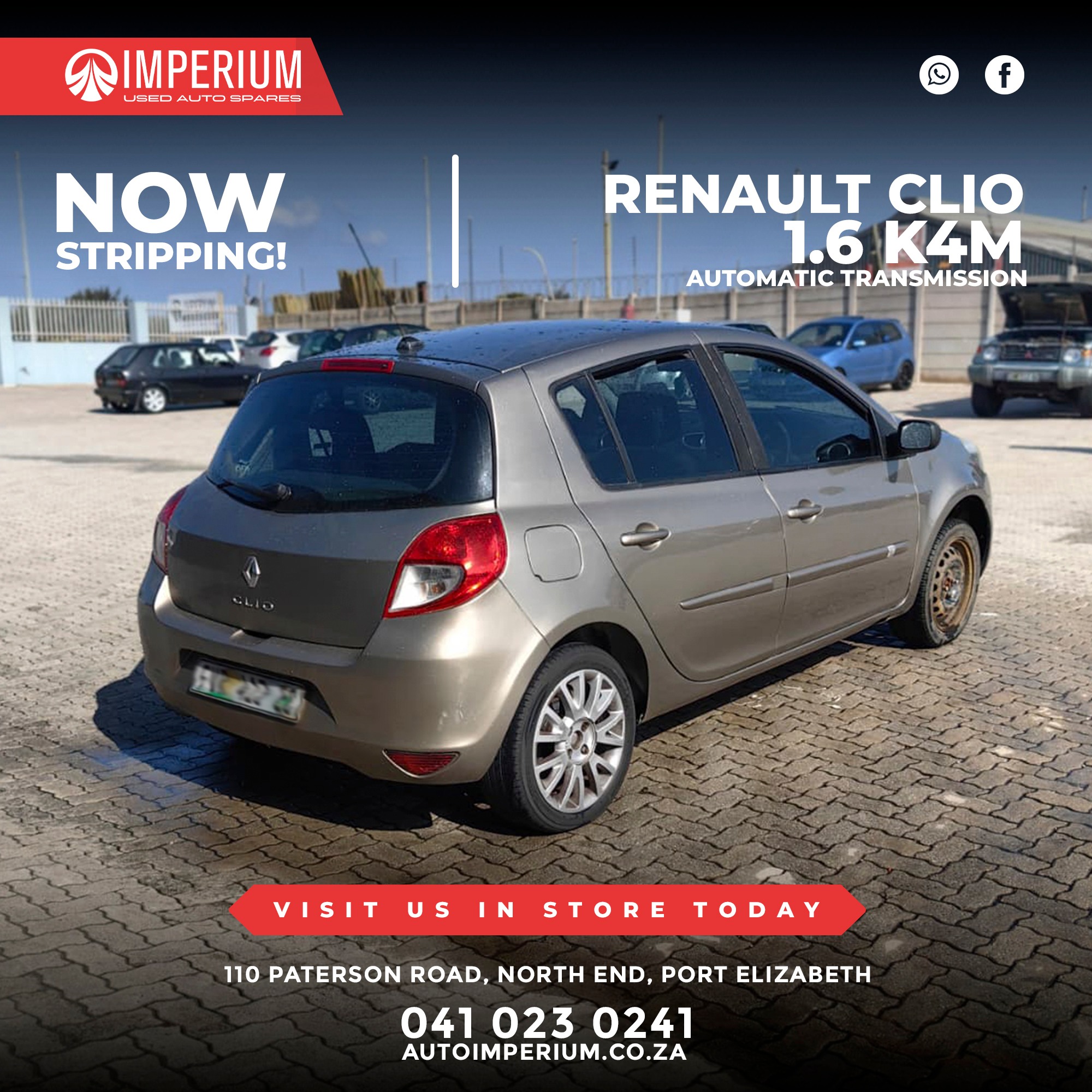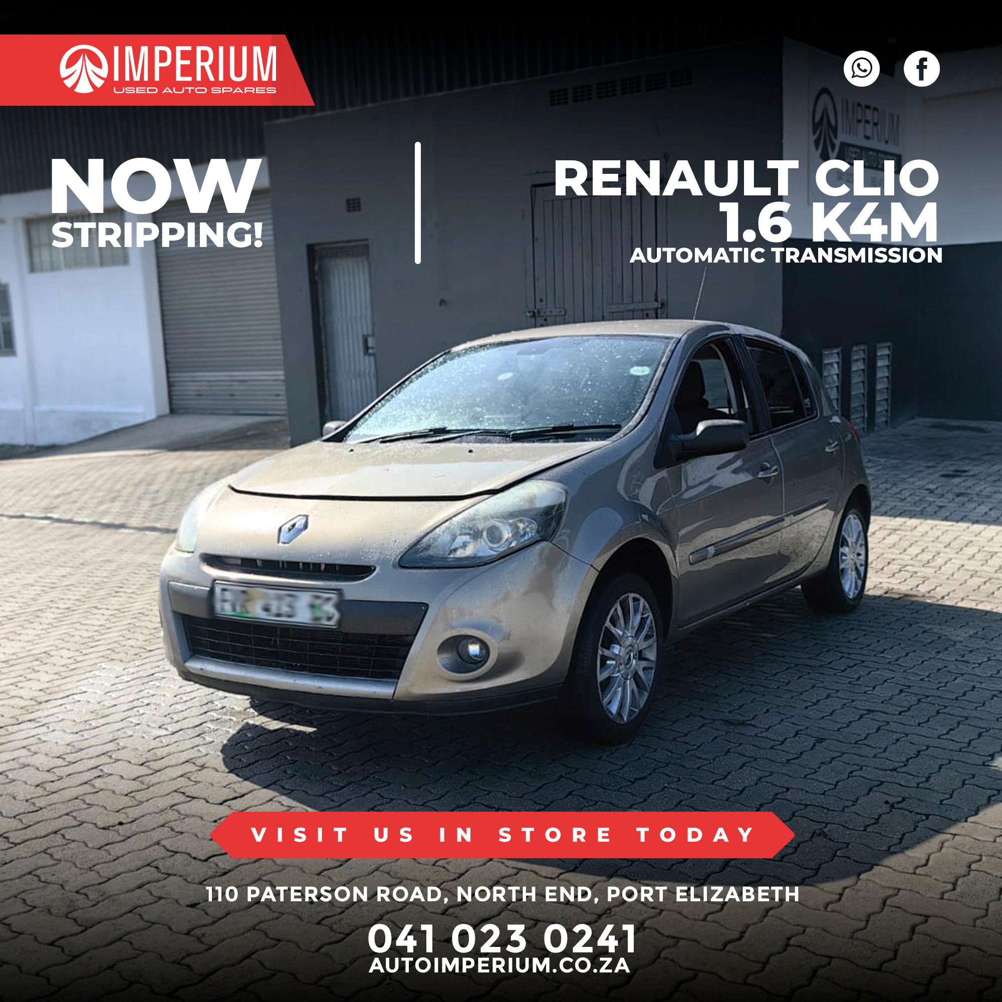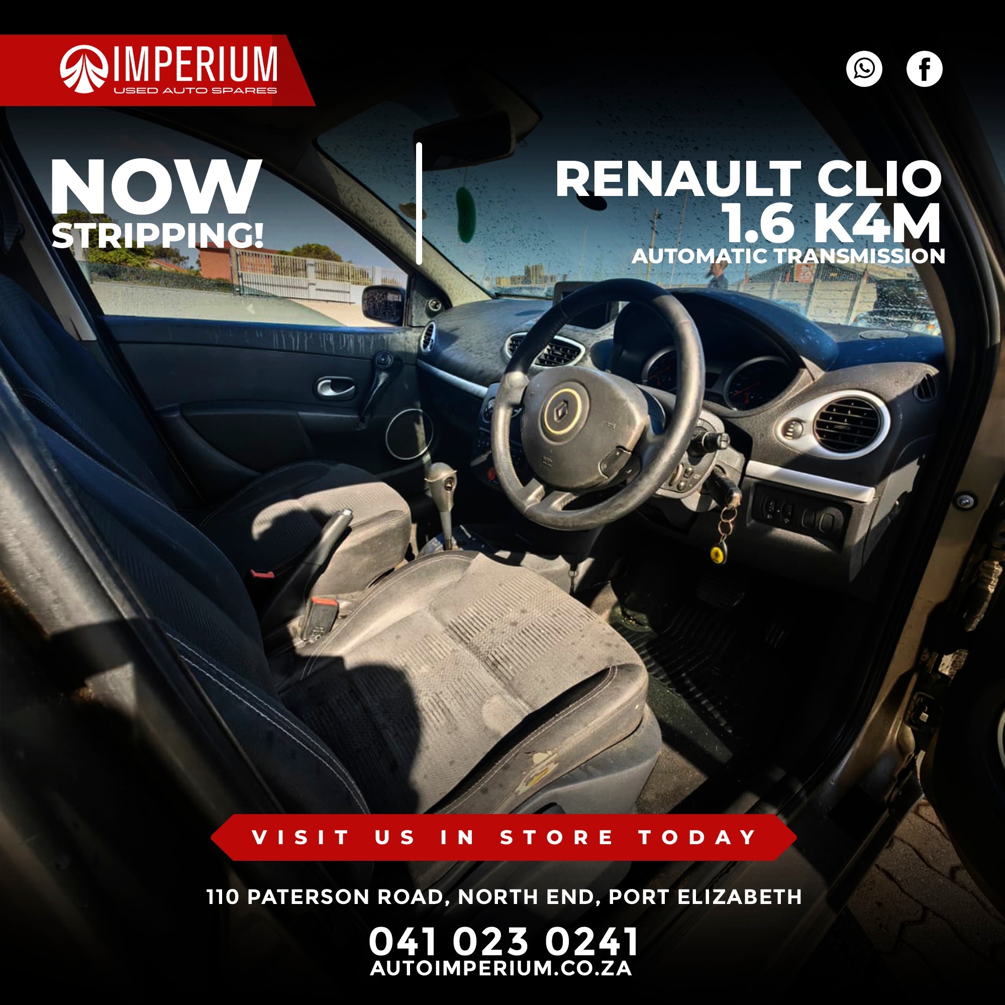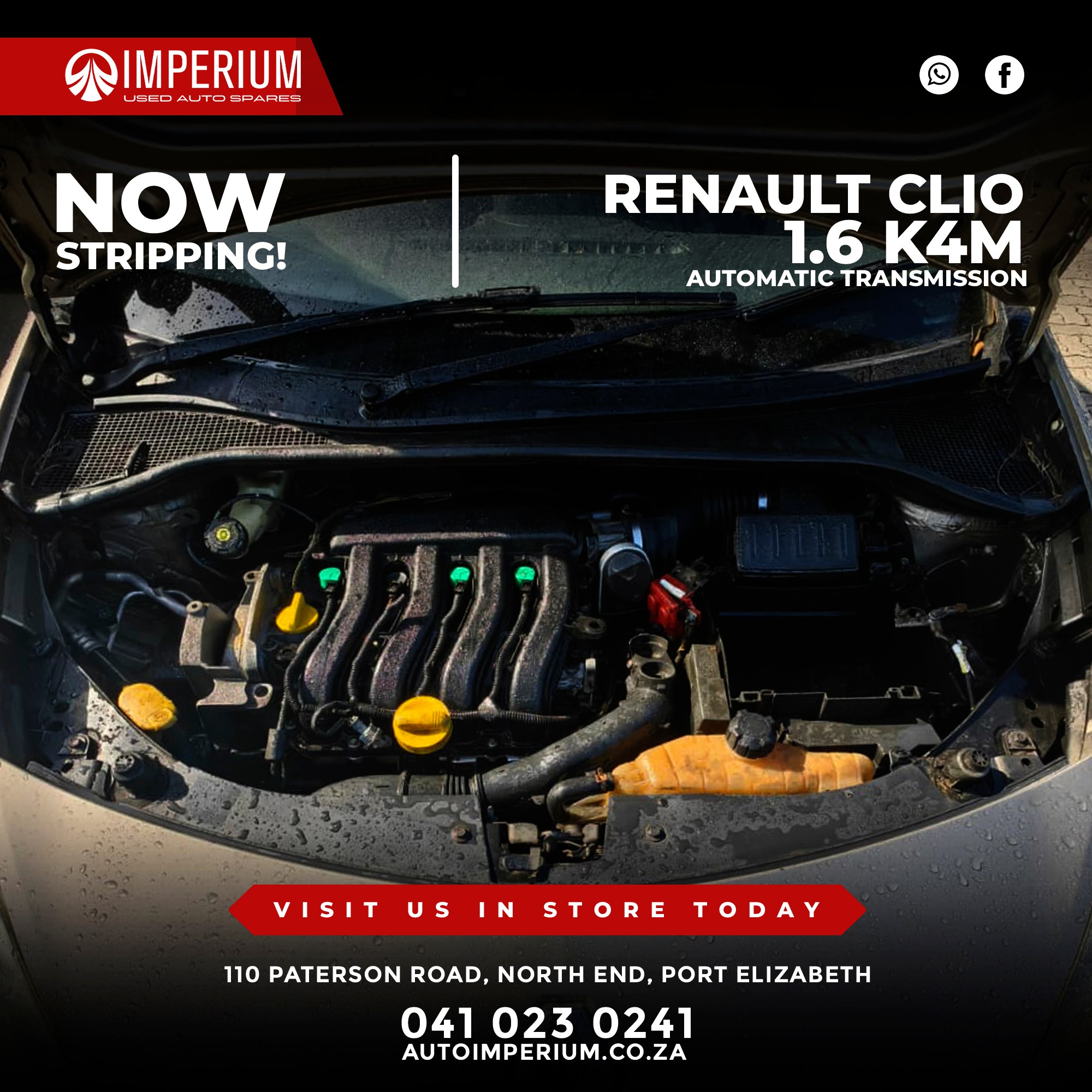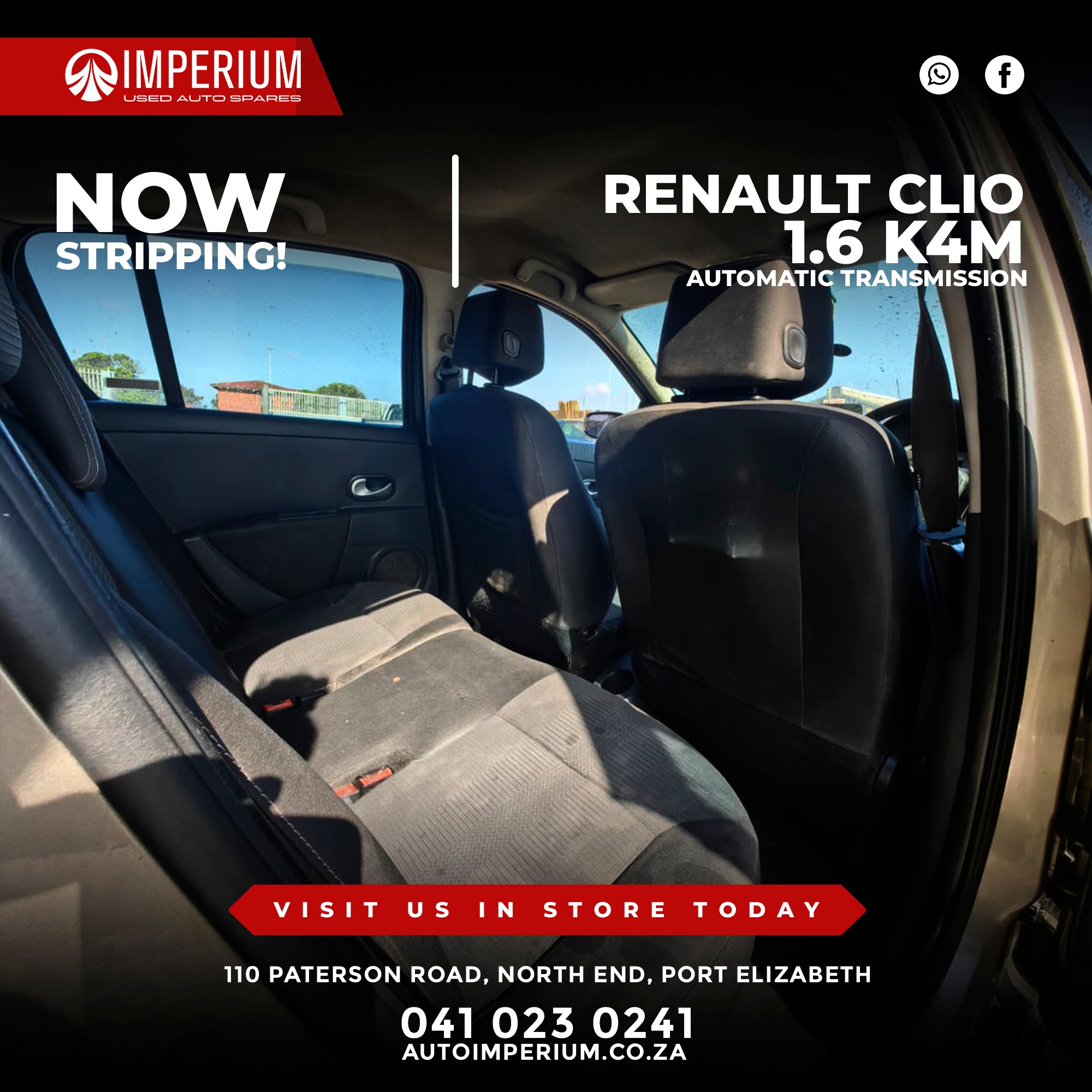 This Renault Clio 1.6 K4M with Manual Transmission is currently being stripped for used parts. A wide range of original Renault components will be available, ideal for repairs or replacements.