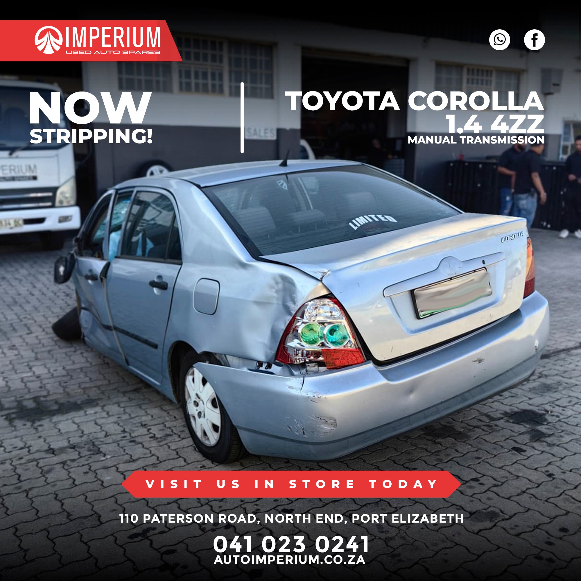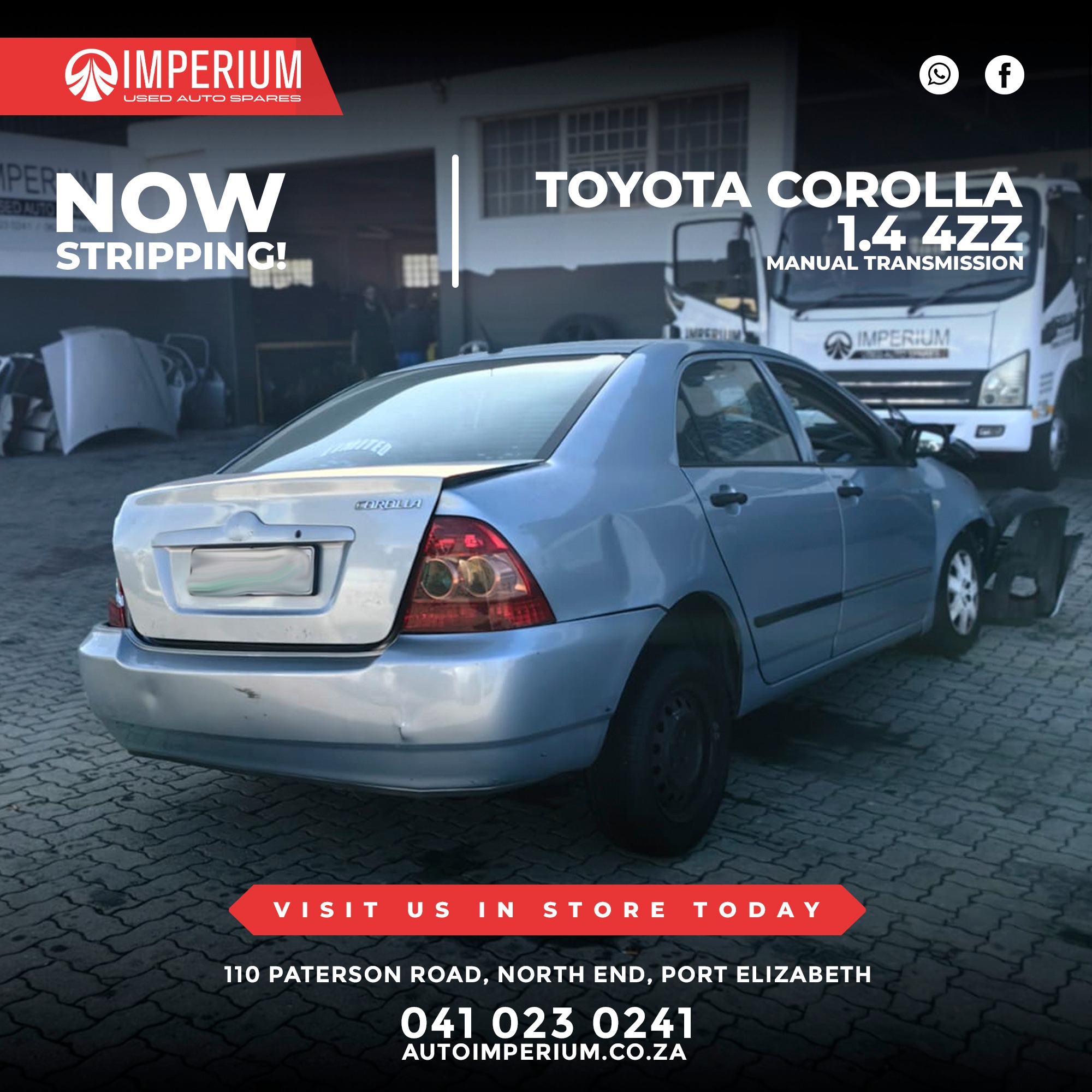 This Toyota Corolla 1.4 4ZZ is currently being stripped for used parts. A wide range of original Toyota components will be available, ideal for repairs or replacements.