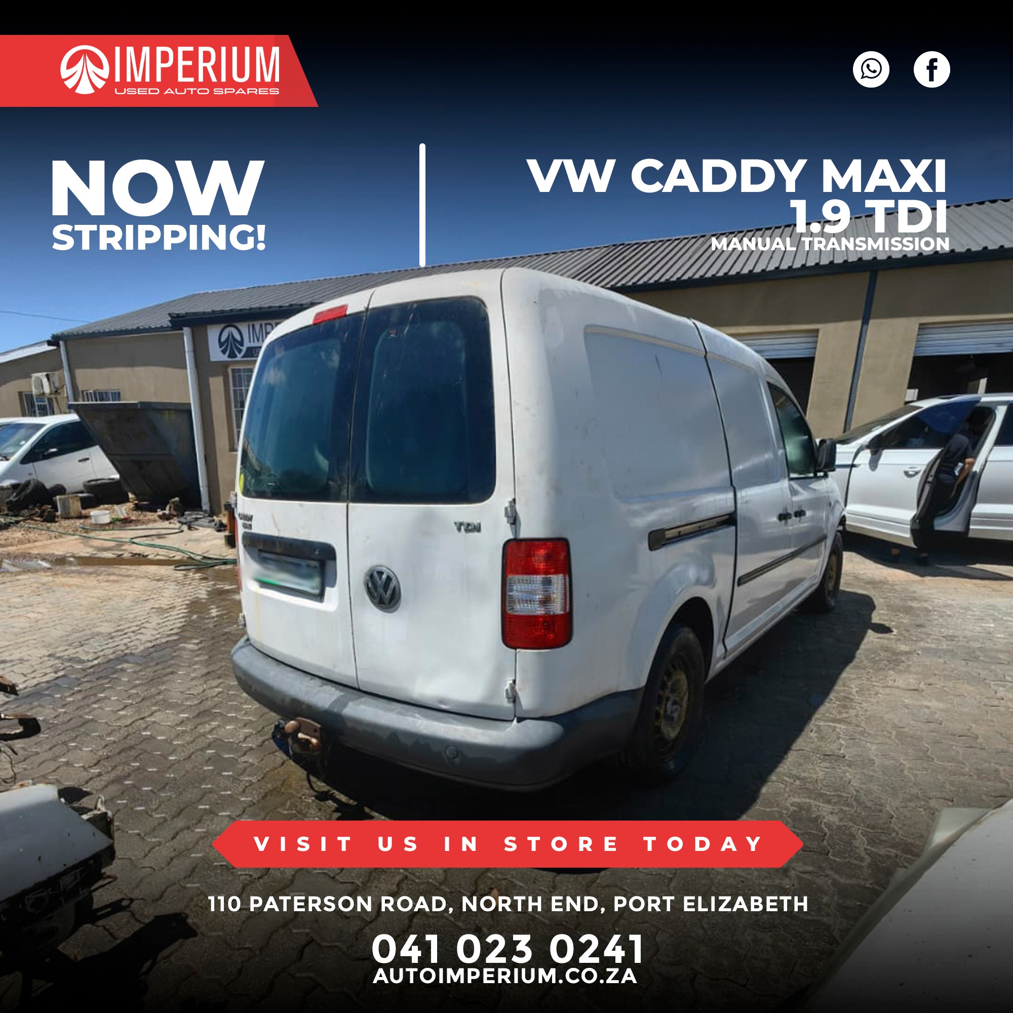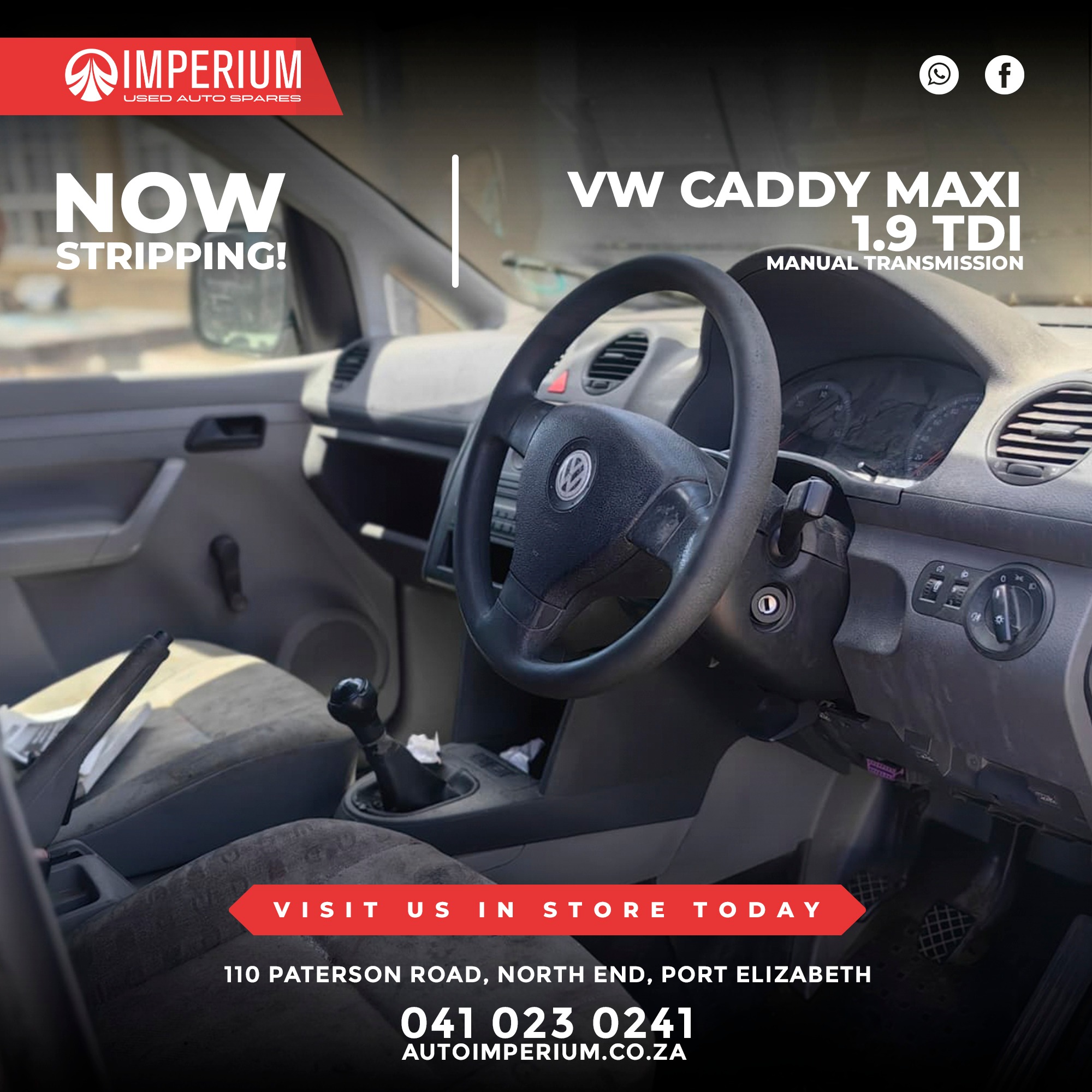 This Volkswagen Caddy Maxi 1.9TDi is currently being stripped for used parts. A wide range of original Volkswagen components will be available, ideal for repairs or replacements.