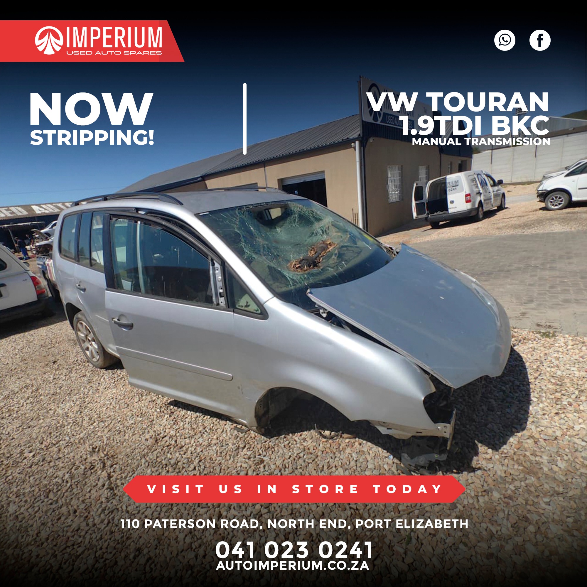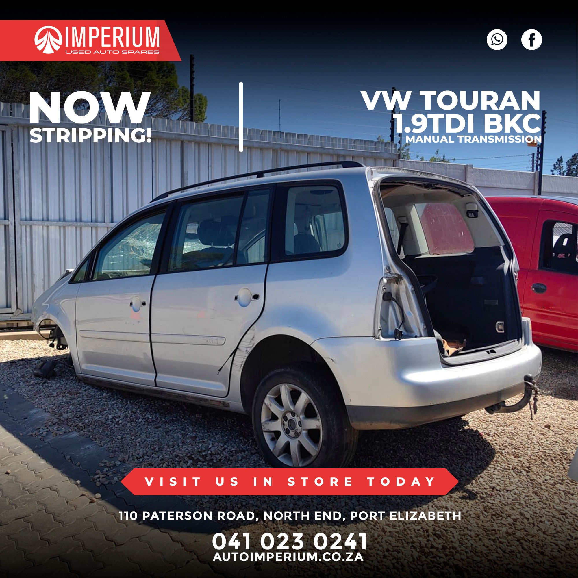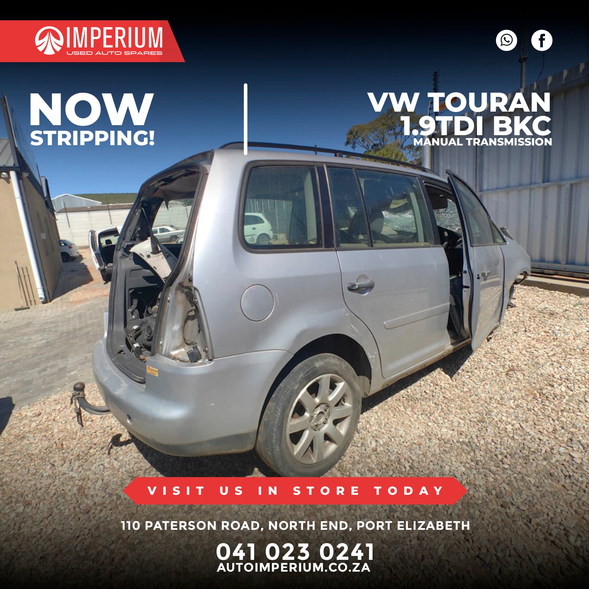 This Volkswagen Touran 1.9TDi BKC is currently being stripped for used parts. A wide range of original Volkswagen components will be available, ideal for repairs or replacements.