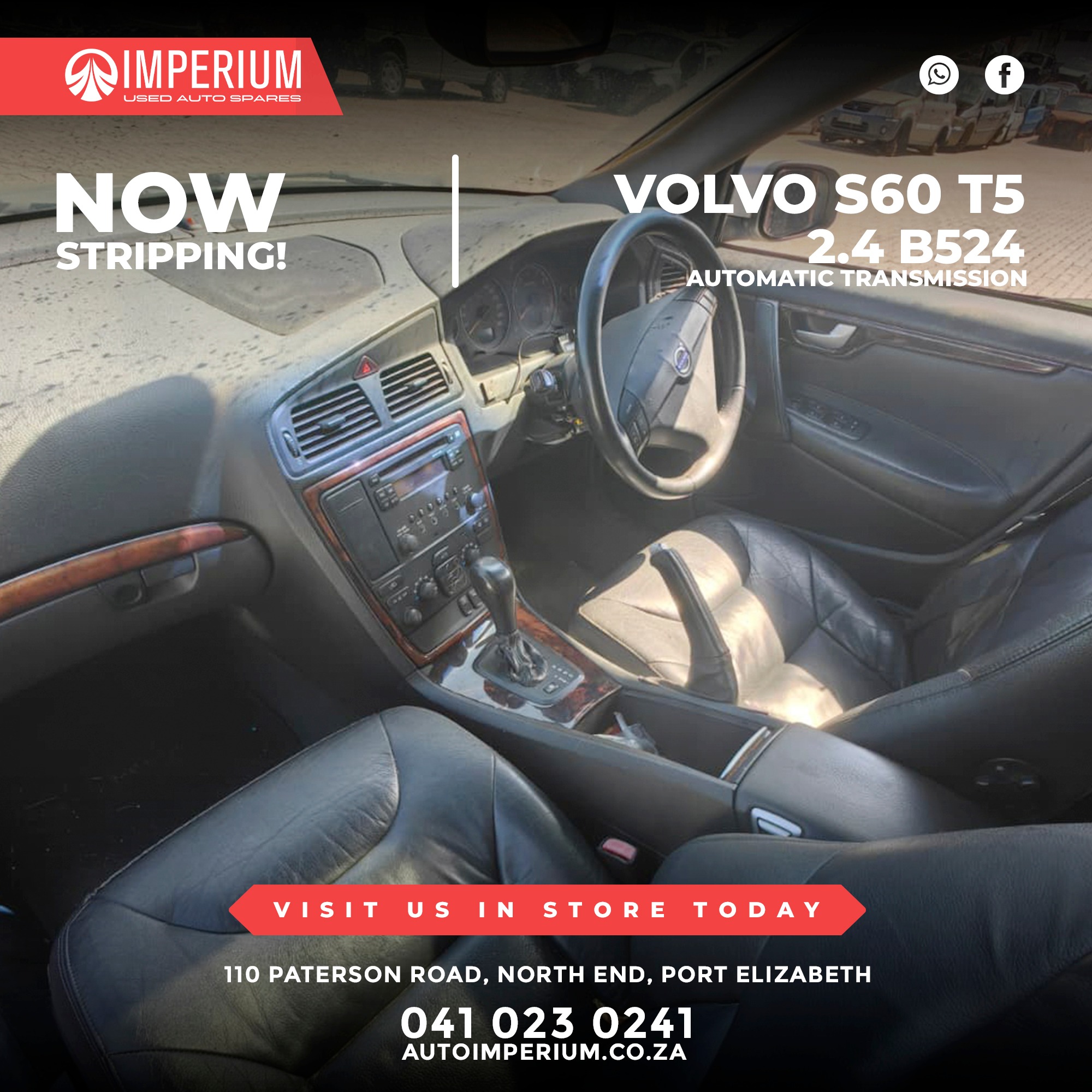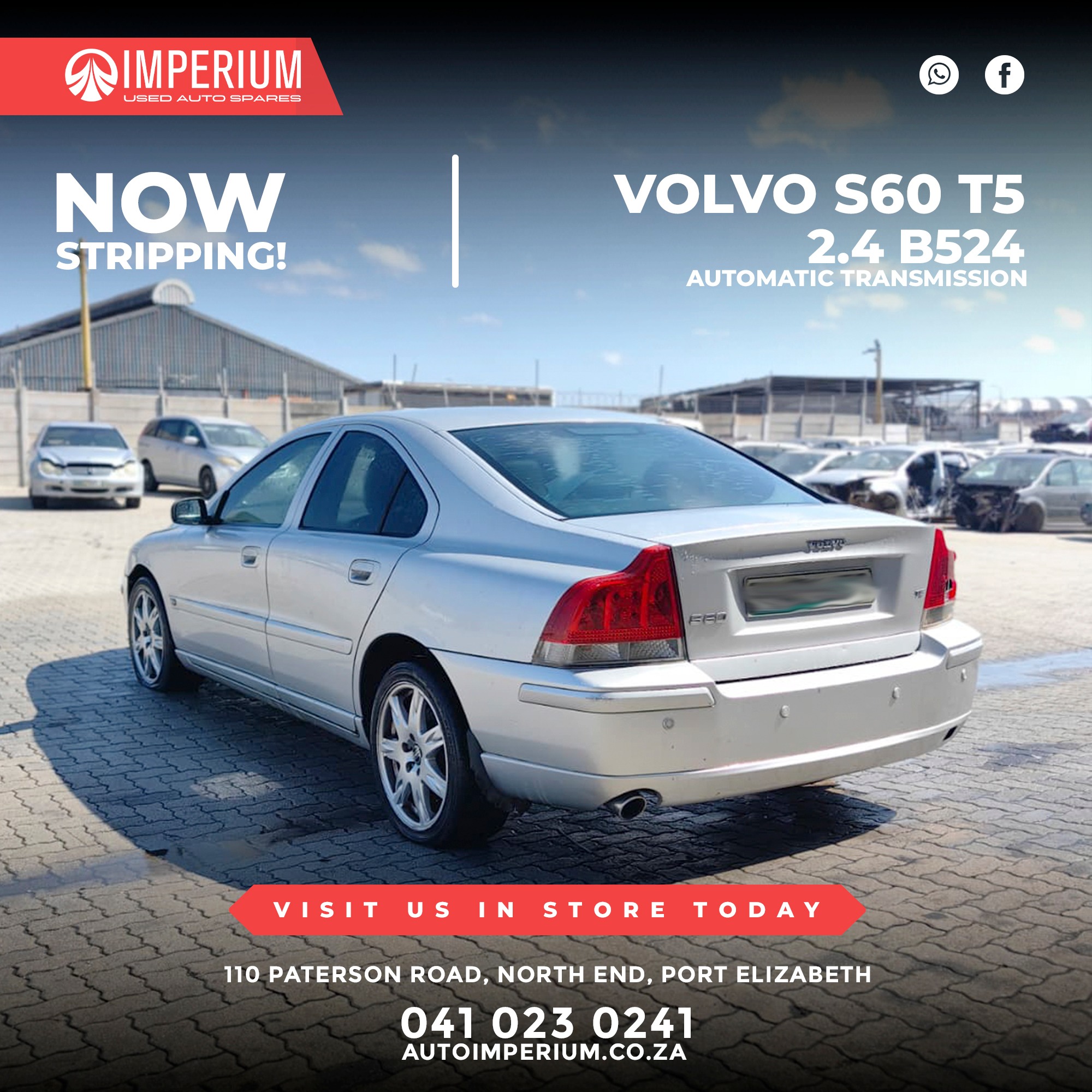 This Volvo S60 T5 2.4 B524 with Automatic Transmission is currently being stripped for used parts. A wide range of original Volvo components will be available, ideal for repairs or replacements.